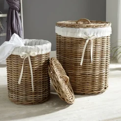 Frank-Flechtwaren Wäschekorb „Home“, Wäschesammler, Wäschepuff, Weide, Grau, Mit Ausschlag