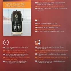 Philips HD7768/90 Grind & Brew Filter Kaffeemaschine, Mahlwerk, Timer, Champagner/schwarz