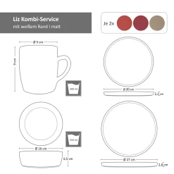Van-Well Van Well Liz 24tlg Kombi-Service 6 Pers. Steingut Sand Rot Terracotta Geschirrset