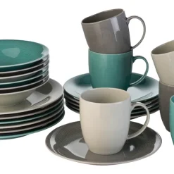 Van-Well Van Well Kombiservice 30-tlg. Für 6 Personen Serie Vario Porzellan – Farbe Wählbar, Farbe:grau