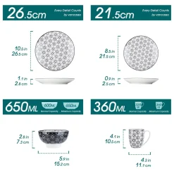 Vancasso Natsuki 16-teilig Porzellan Kombiservice, Mit Je 4 Speiseteller Ø 27 Cm, Dessertteller Ø 21,5 Cm, Müslischalen Ø 15,2 Cm Und Kaffeebecher 380 Ml