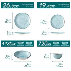 Vancasso Bella Steinzeug Kombiservice, 16 Teilig Geschirrset Für 4 Personen, Mit Je 4 Dessertteller, Speiseteller, Müslischalen, Kaffeebecher, Blau