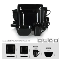 Vancasso Tafelservice »SOHO« 16-tlg. Porzellan Teller Set, Kombiservice Tafelset Mit Kaffeetassen, Müslischalen, Schwarz