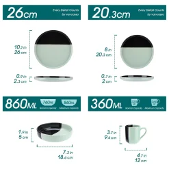 Vancasso Aria Tafelservice Für 8 Personen (32-teilig) Mit Tellern, Schalen Und Tassen, Schwarz Und Türkis
