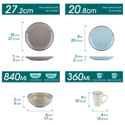 Vancasso Navia Nature 16 Teilig Kombiservice, Geschirrset Aus Steingut In 4 Farbkombi (Erdfarben, Hellblau, Cremefarben, Beige), Vintage Design