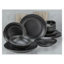 Creatable Porzellanhaus CreaTable 23205 Tafelservice Elements Collection Lava Stone Für 4 Personen, Steinzeug, Schwarz/grau (1 Set, 12-teilig)