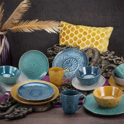 Creatable Porzellanhaus CreaTable 22561 Kombiservice Samarkand Für 4 Personen, Steinzeug, Mehrfarbig (1 Set, 16-teilig)
