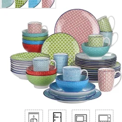 Kombiservice Porzellan, Vancasso Tafelservice Bunt, MACARON 40 Teilig Geschirrset, Mit Je 8 Speiseteller, Dessertteller, Müslischalen, Suppenteller Und Kaffeebecher Für 8 Personen