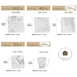 MALACASA, Serie Flora, 60 Tlg. Marmor Porzellan Geschirrset Kombiservice Tafelservice Mit Je 12 Kaffeetassen, 12 Untertassen, 12 Dessertteller, 12 Suppenteller Und 12 Flachteller