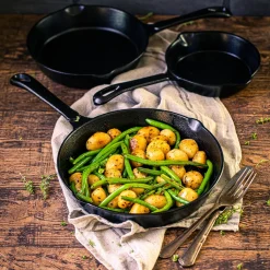 BBQ-Toro Ultimate PRO3+ Pfannen Set, 3-teilig, Gusseisen Bratpfanne, Steakpfanne