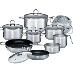 GSW Kochtopf-Set Alara 14 Tlg., Edelstahl Rostfrei 18/8, Glas, Bratentopf Mit Glasdeckel ø Ca. 20 X H 11,0cm / Fleischtopf Mit Glasdeckel ø Ca. 16 X H 10,0cm / ø Ca. 20 X H 12,0cm / ø Ca. 24 X H 14,0cm / Bratpfanne Mit Glasdeckel ø Ca. 24 X H 6,0cm / Servierpfanne ø Ca. 28 X H 7,0cm / Stielkasserolle ø Ca. 16 X H 8,0cm / Milchtopf ø Ca. 14 X H 12,5cm / Dämpfeinsatz Ca. 20 X H 10,0cm