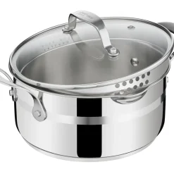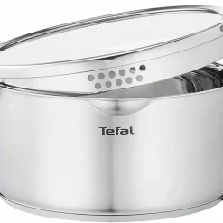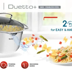 TEFAL DUETTO+ 7-Teiliges Topf-Set: Stielkasserole 16 Cm, Kochtopf 16/20/24 + Deckel; Hochwertiger Rostfreier Edelstahl; Glasdeckel Mit Abgießfunktion; Induktionsgeeignet; G719S7