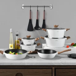 Zilner Weiße Keramik-Marmortöpfe Mit Bratpfanne Und Wok Set 15-teiliges