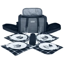 Anndora Picknick Kühltasche + Decke + Zubehör – Blau Weiß Gestreift – Blau