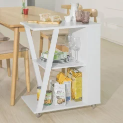 SoBuy FKW77-W Design Servierwagen Küchenwagen Beistellwagen Rollwagen Mit 3 Ablagen Und 2 Regalfächern Weiß BHT Ca.: 60x77x38cm