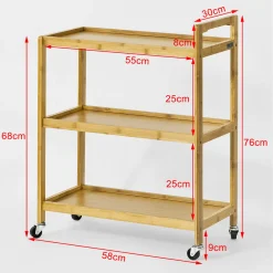 SoBuy Küchenregal, Küchenwagen, Baderegal Aus Bambus Mit Rollen FKW11-N