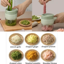 Jefety 500ml Zwiebelhacker Zwiebelschneider Gemüsehacker Gemüseschneider Knoblauchhacker Küchenmaschine Rotierender Hochgeschwindigkeitsmixer Für Obst & Gemüse, Knoblauch, Zwiebeln, Nüsse, Tomaten Grün