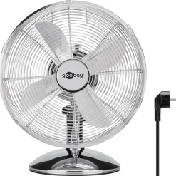Goobay Retro Tischventilator Mit 3 Leistungsstufen, 40cm Durchmesser (12 Zoll) – Neigbar, Schwenkbar, Super Leise – Verchromt