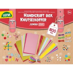 LENA Spielwaren Bastelkoffer Jumbo Pink, 800 Teile Materialsets Basteln & Kreativitätsspielzeug