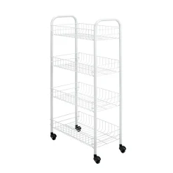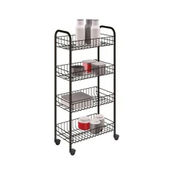 MetalTex Servierwagen Mit 4 Körben Küchenwagen Küchentrolley Schwarz/Weiß