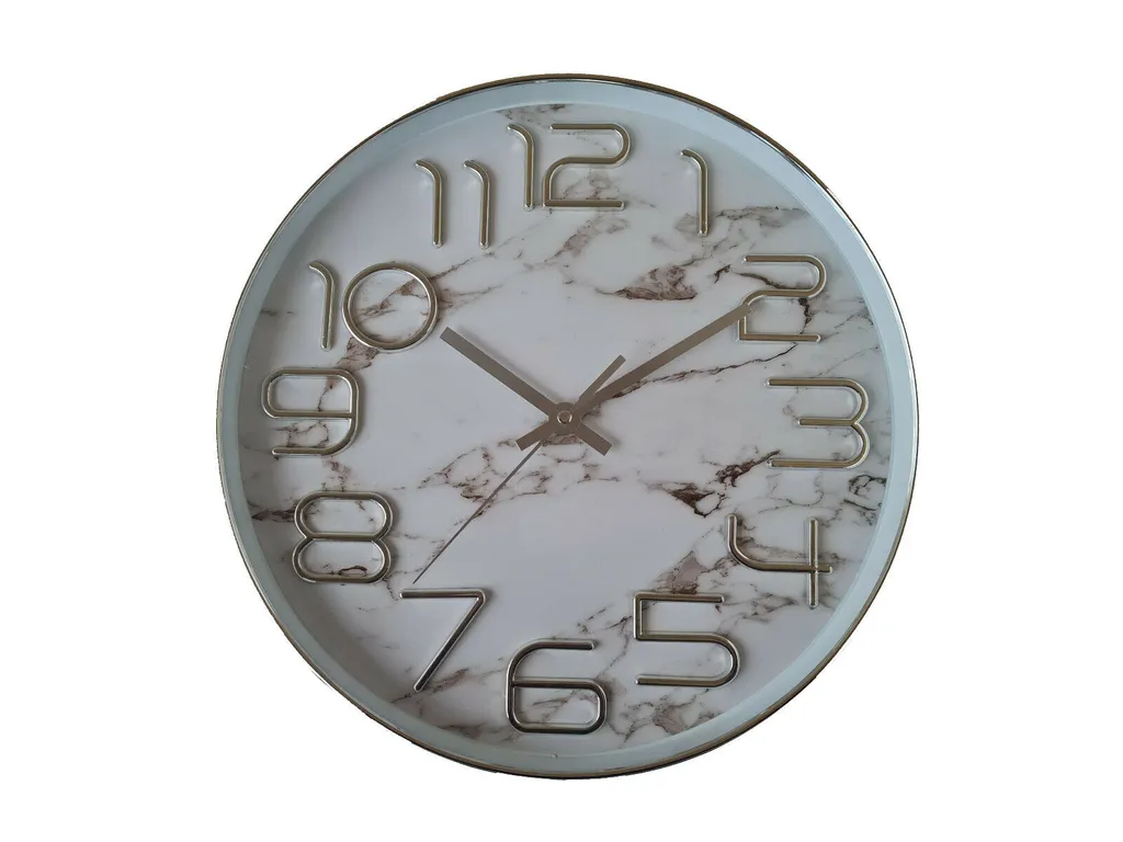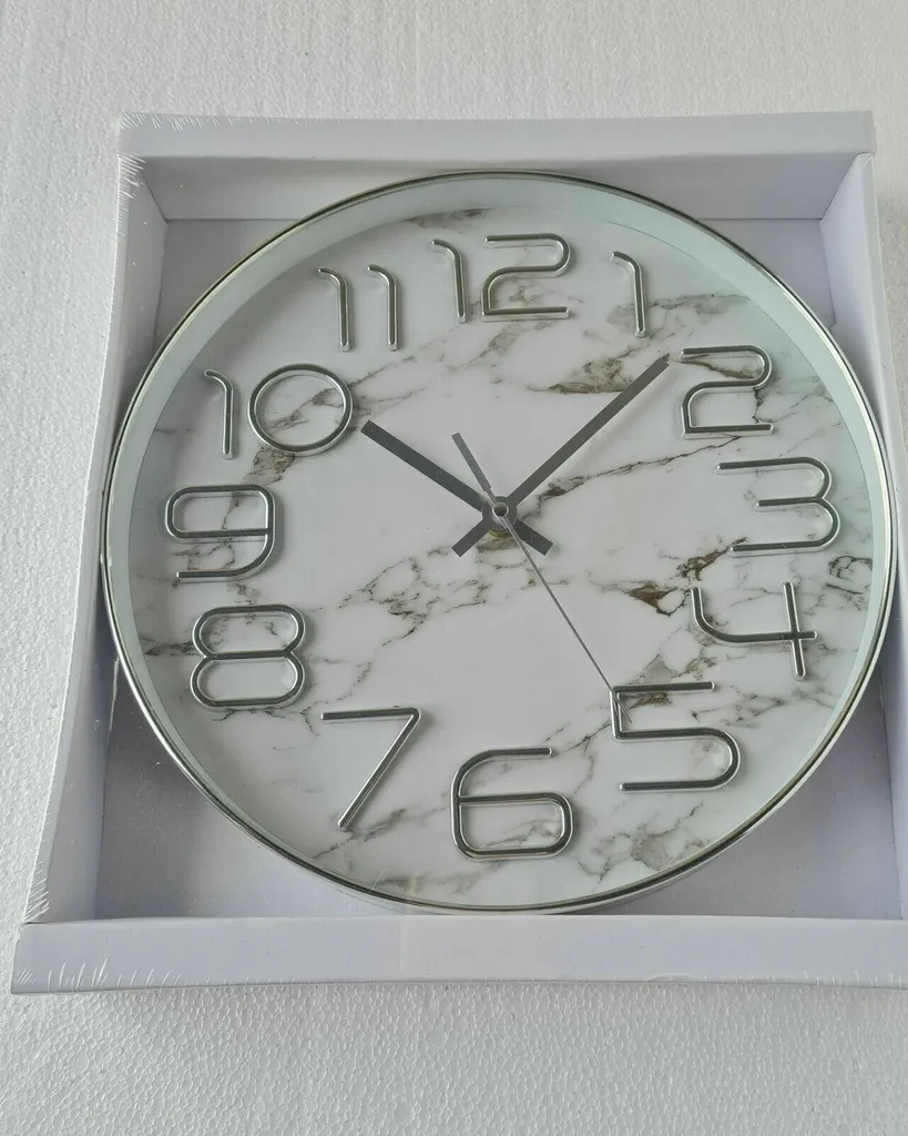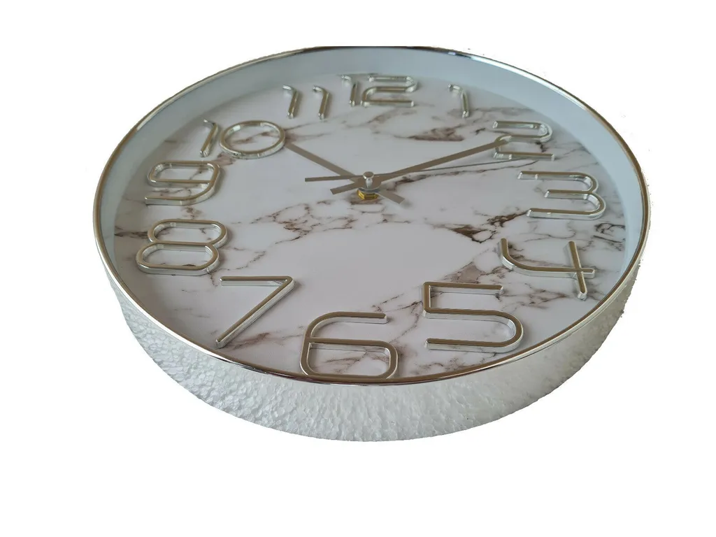 180s Wanduhr Uhr Marmor MARMOROPTIK Geräuscharm Weiß Grau 30cm SILBER NEU