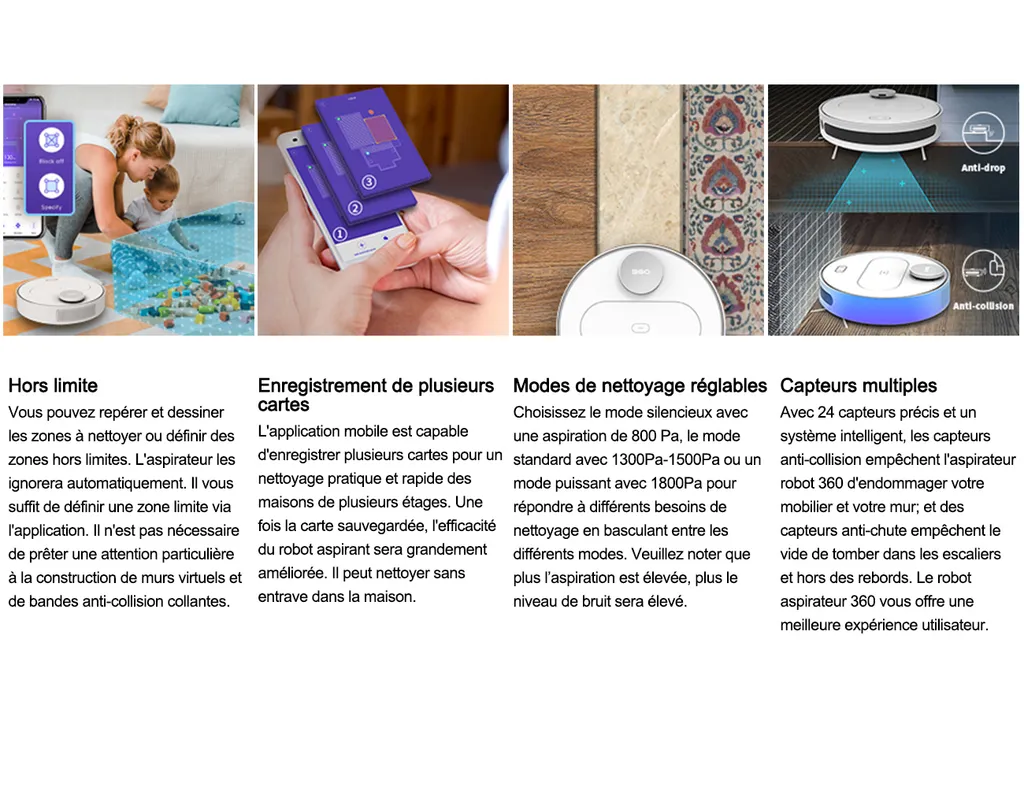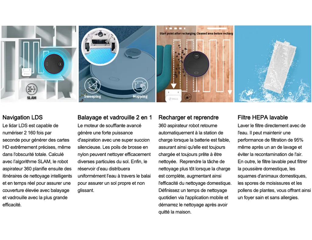 360 S6 Smart Saugroboter Staubsauger Automatisch APP 3200mAh Roboterstaubsauger Vacuum Reinigung Schwarz