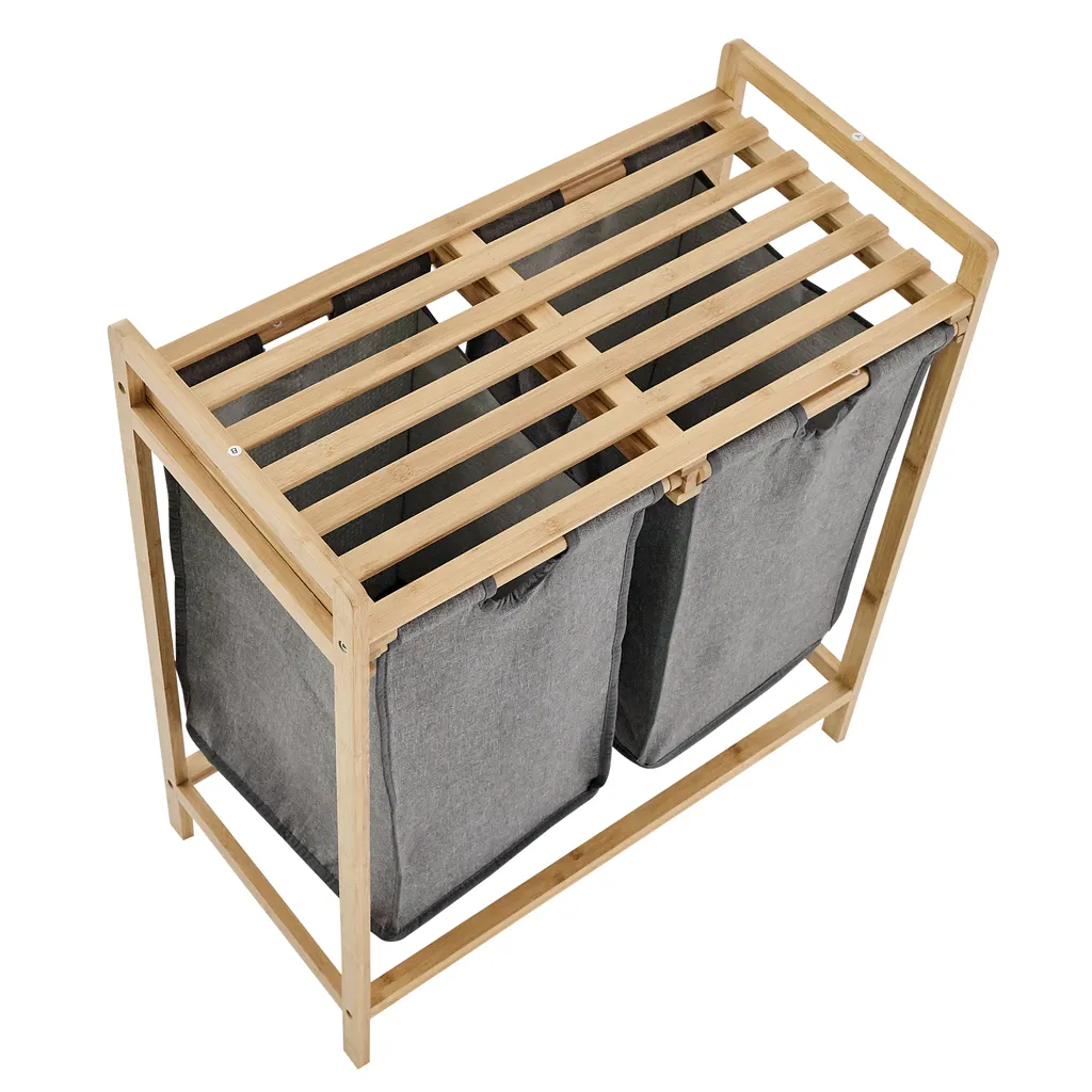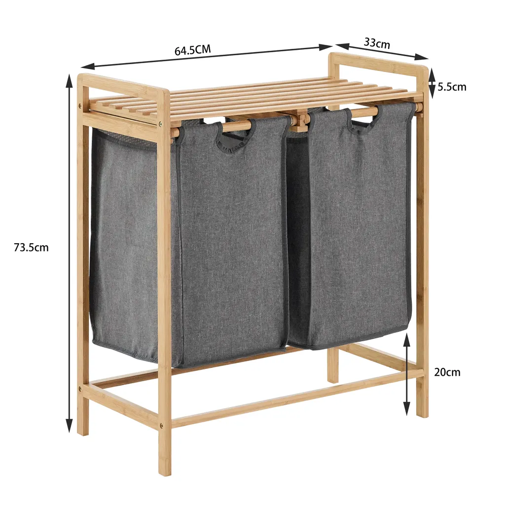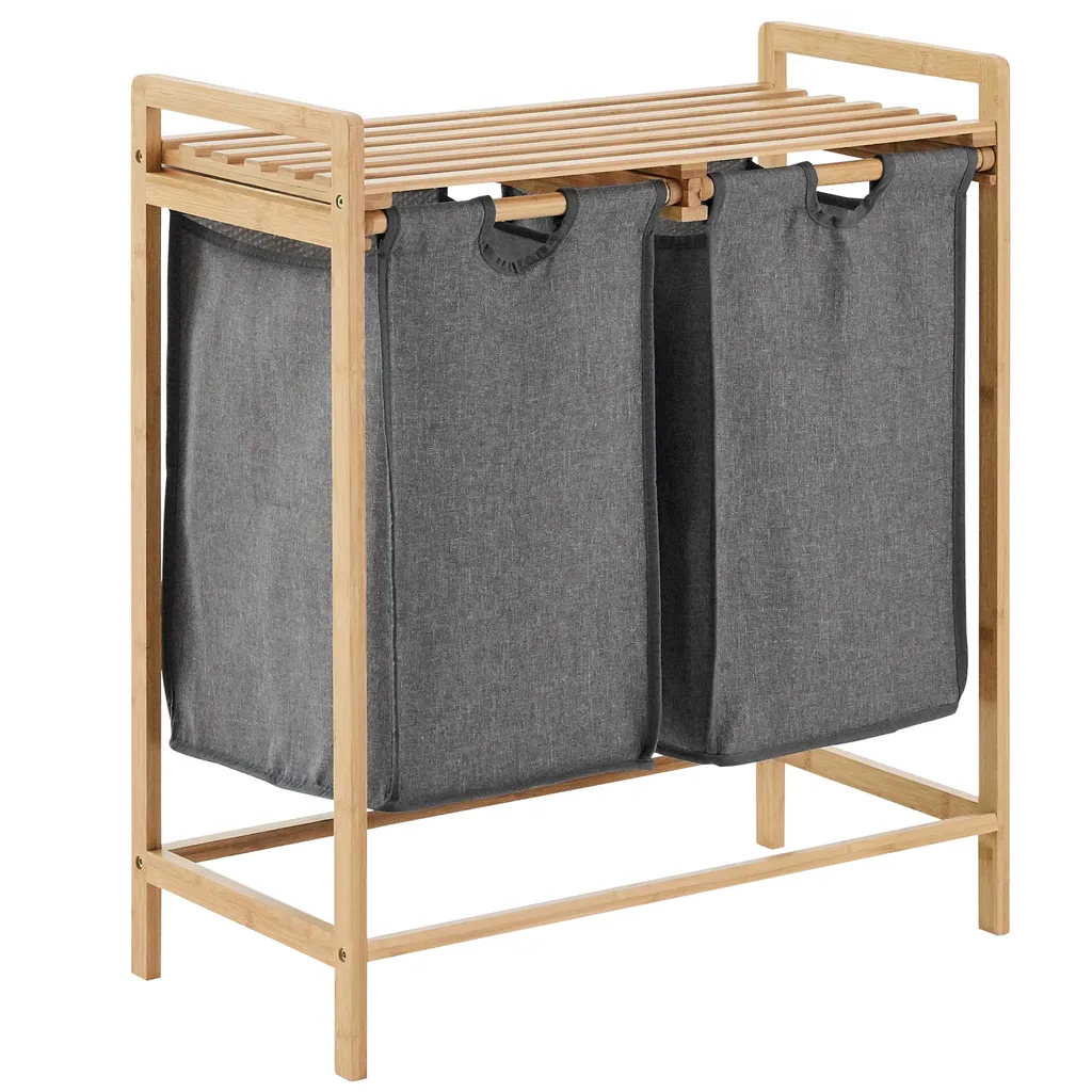 ACAZA Wäschekorb Mit 2 Fächern, Wäschesortierer Mit Ausziehbaren Wäschesäcken – Stoff / Bambus – Grau