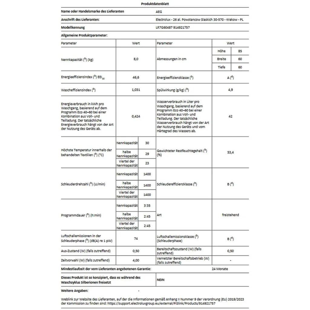 AEG – LR7G60487 – Waschmaschine – 8 Kg