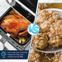 Aigostar – Ölfreie Fritteuse 8 L, Heißluftfritteuse Mit Klarsichtfenster, 1700 W, Doppelknopf & Doppel-LED-Touchscreen Heißluftfritteuse, 12 Voreingestellte Funktionen, Doppelkorb, Spülmaschinenfest, BPA-frei