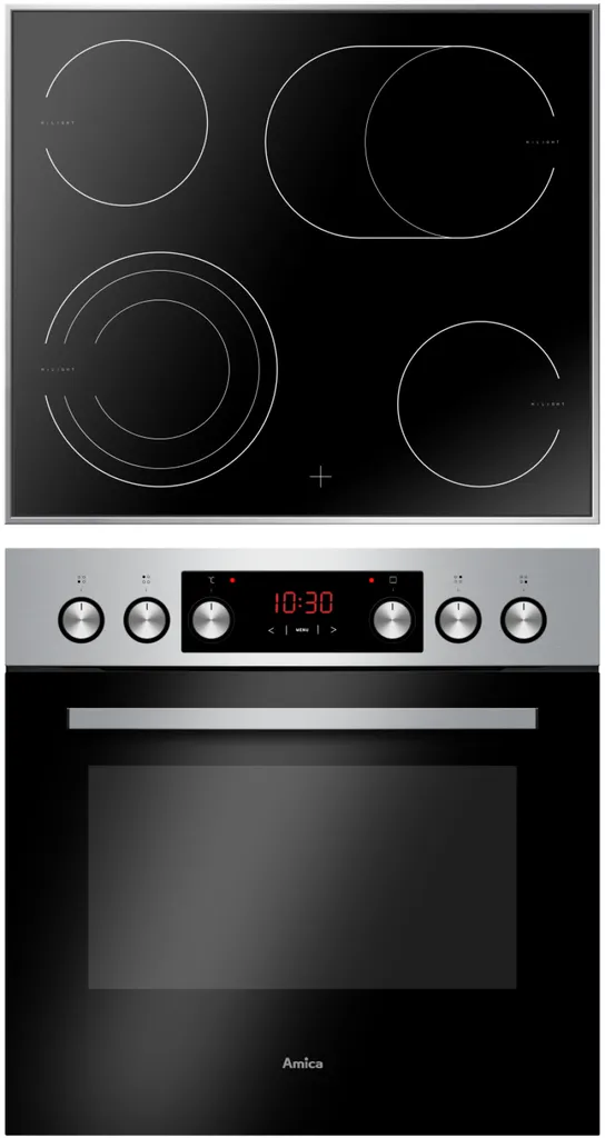 Amica EHCX 933 110 E, Herd-Set, Glaskeramik-Kochfeld, Fine Design, Edelstahl, XXL-Großbackofen, Energieeffizienzklasse A