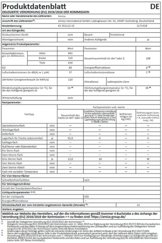Amica – KS 361112-1E – Kühlschrank Mit Gefrierfach – Edelstahloptik