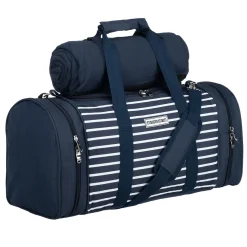 Anndora Picknick Kühltasche + Decke + Zubehör – Blau Weiß Gestreift – Blau