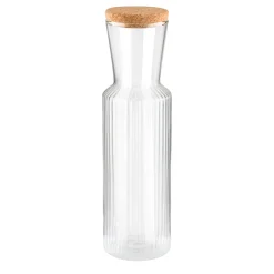 APS Glaskaraffe -LINES- /// Ø 8 Cm, H: 27 Cm, 0,9 Liter /// Glas, Deckel Aus Kork /// /// 10738