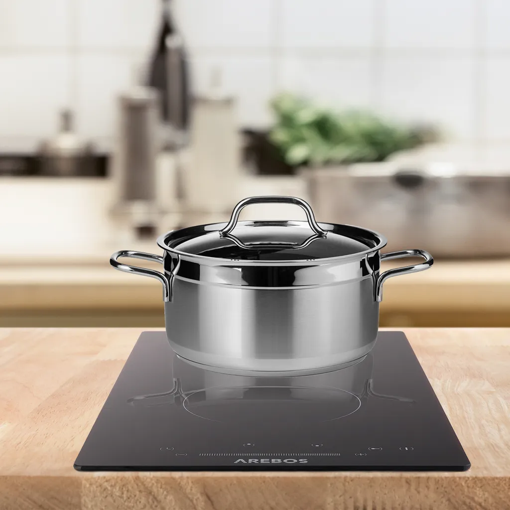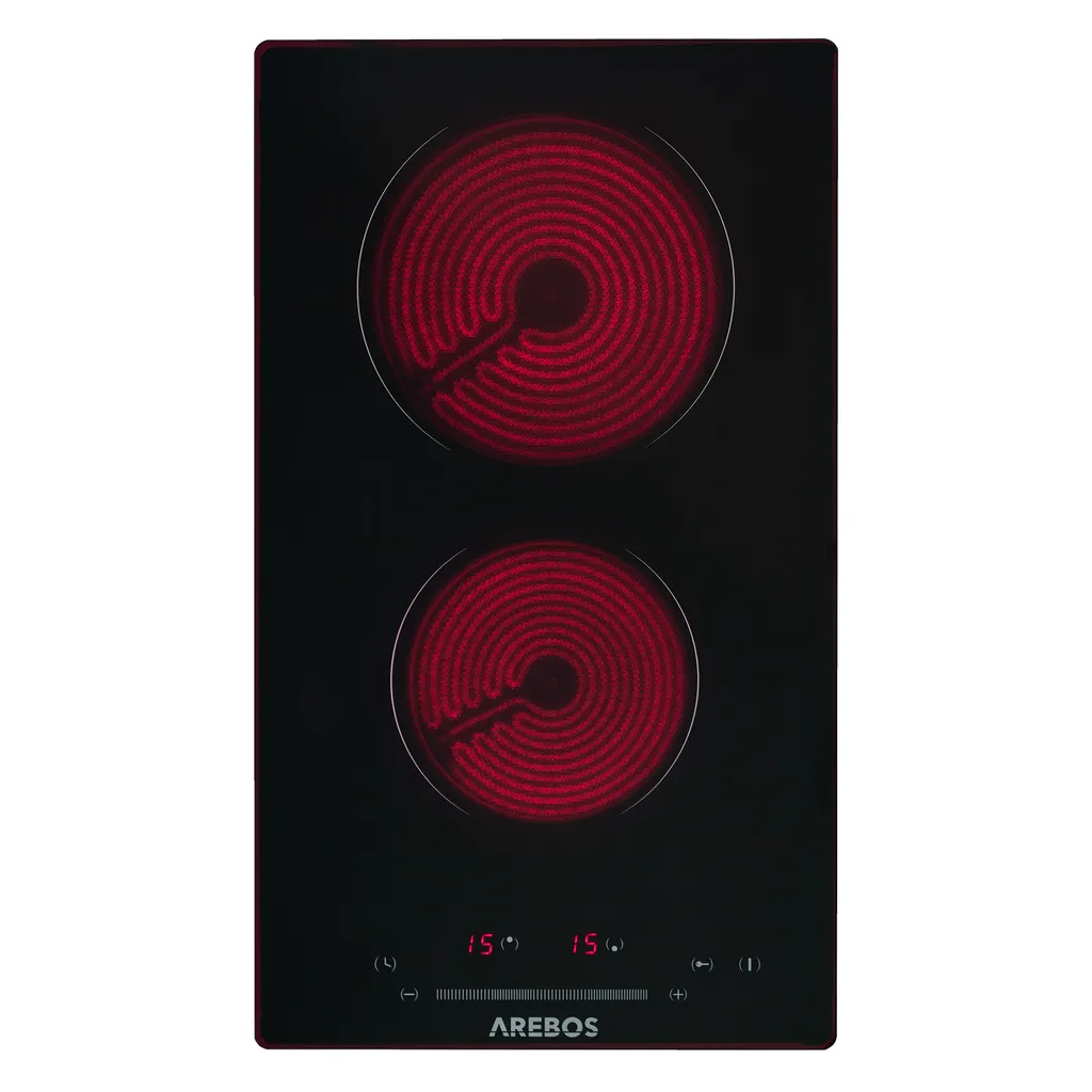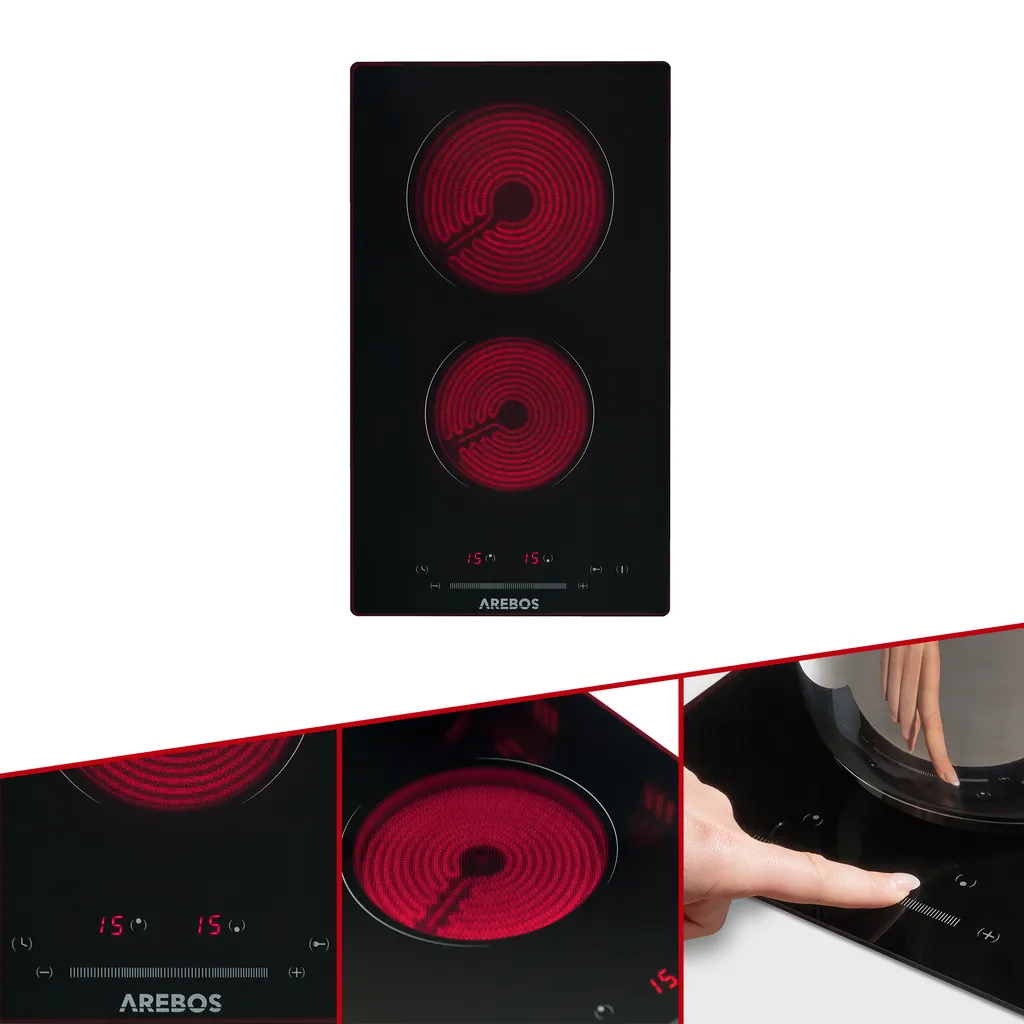 AREBOS Glaskeramikkochfeld, 3000 W, 2 Kochfelder, 30cm, Autark, Mit Sensor Touch