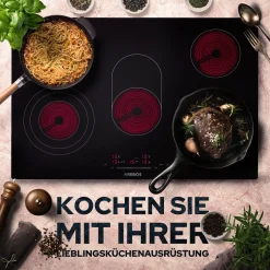 AREBOS Glaskeramikkochfeld, 8500 W, 5 Kochfelder, 77cm, Autark, Inkl. Dual-Kochzone Und Bräterzone, Mit Sensor Touch, Kindersicherung, Überhitzungsschutz, Autoabschaltung