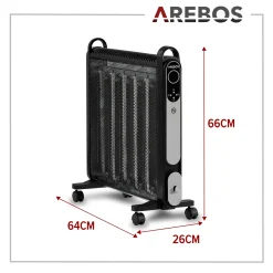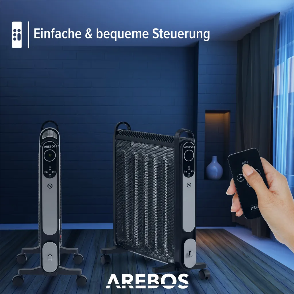 AREBOS Mica Konvektor 2000 W | Wärmewellenheizer | Elektroheizung | Konvektor-Heizung | Mobile Elektroheizung Energiesparend | Leise Heizung | Mobiler Elektro Heizlüfter Mit 2 Heizstufen | Schwarz