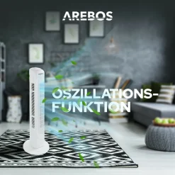 AREBOS Turmventilator, 50 Watt, 60°-Oszillation, 3 Geschwindigkeitsstufen, Ventilator Mit Tragegriff, Weiß, Leise