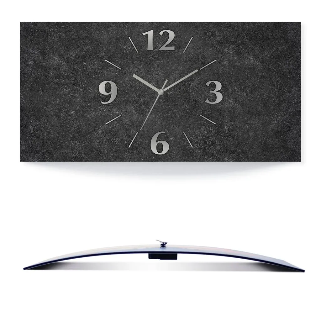 ARTland Wanduhr, Gebogen Quarzuhr – Silberne Zeiger Granitoptik Größe: 50×25 Cm