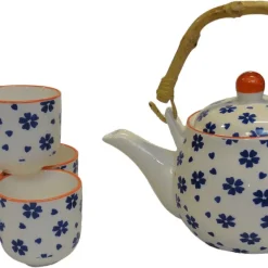 Asia Art Factory 270 Asia Teeset Teeservice Teekanne Tassen 5 Tlg Weiss Blau Blumen Kinder Ruka