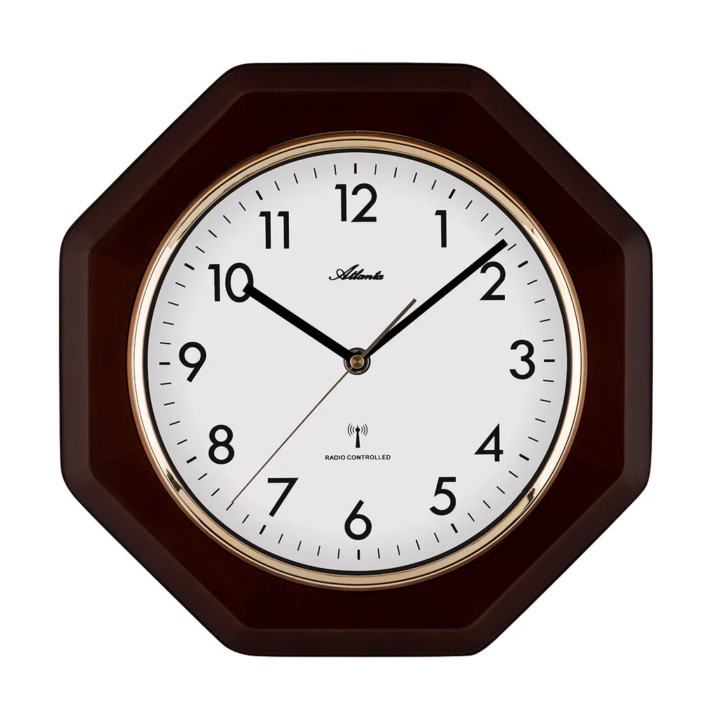 Atlanta 4537/20 Wanduhr Funk Funkwanduhr Analog Achteckig Nussbaum-farben