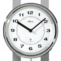 Atlanta 5105/19 Wanduhr Funk Funkwanduhr Mit Pendel Silbern Pendeluhr