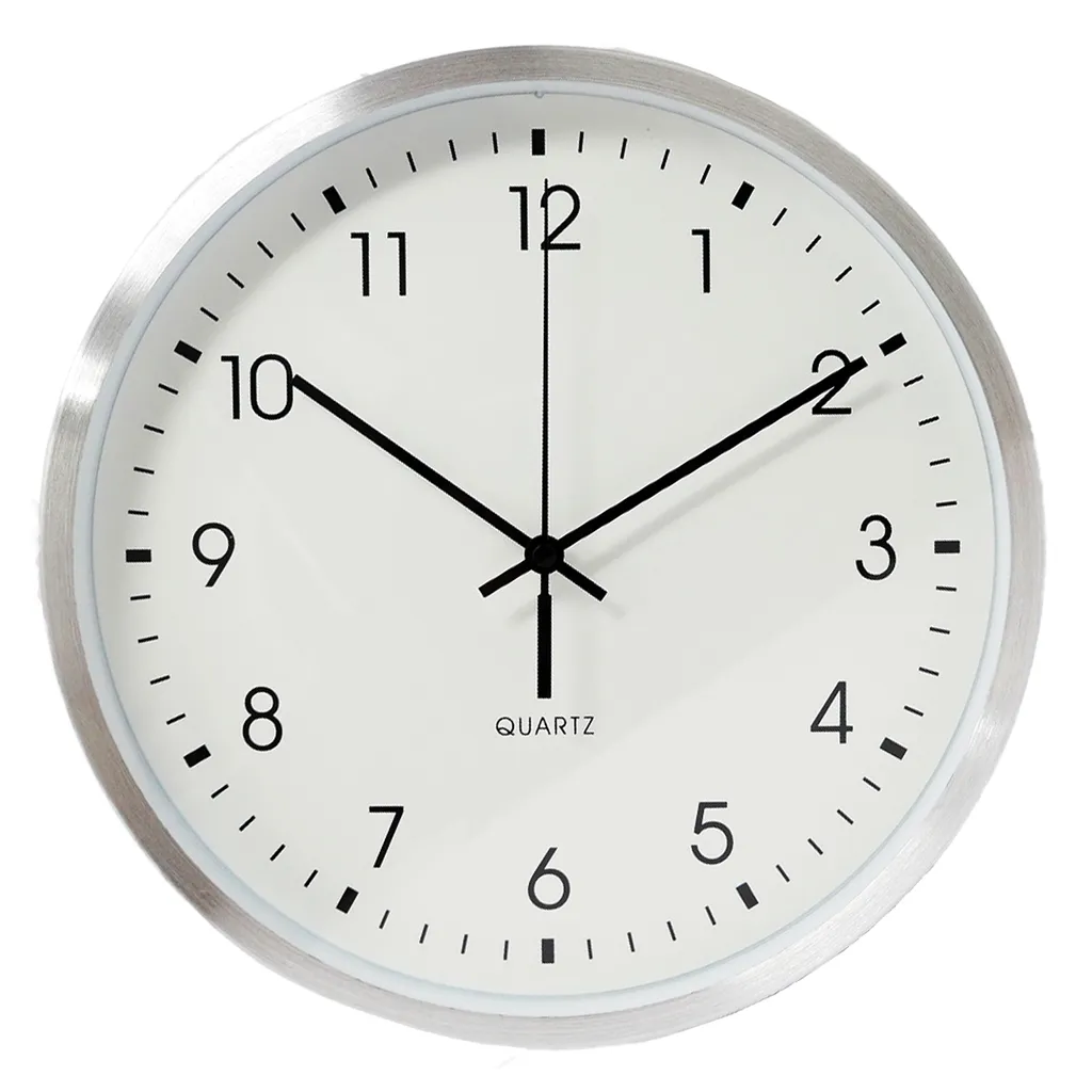 B&S Wanduhr Analog Quartz Ø 25 Cm Ziffernblatt Zahlen Aluminium Silber Rund