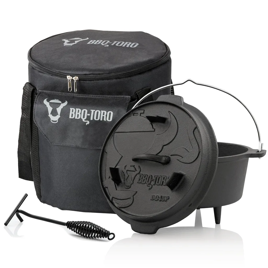 BBQ-Toro Dutch Oven Set 3-teilig, 4.5 QT Feuertopf + Deckelheber, Gusseisen Topf