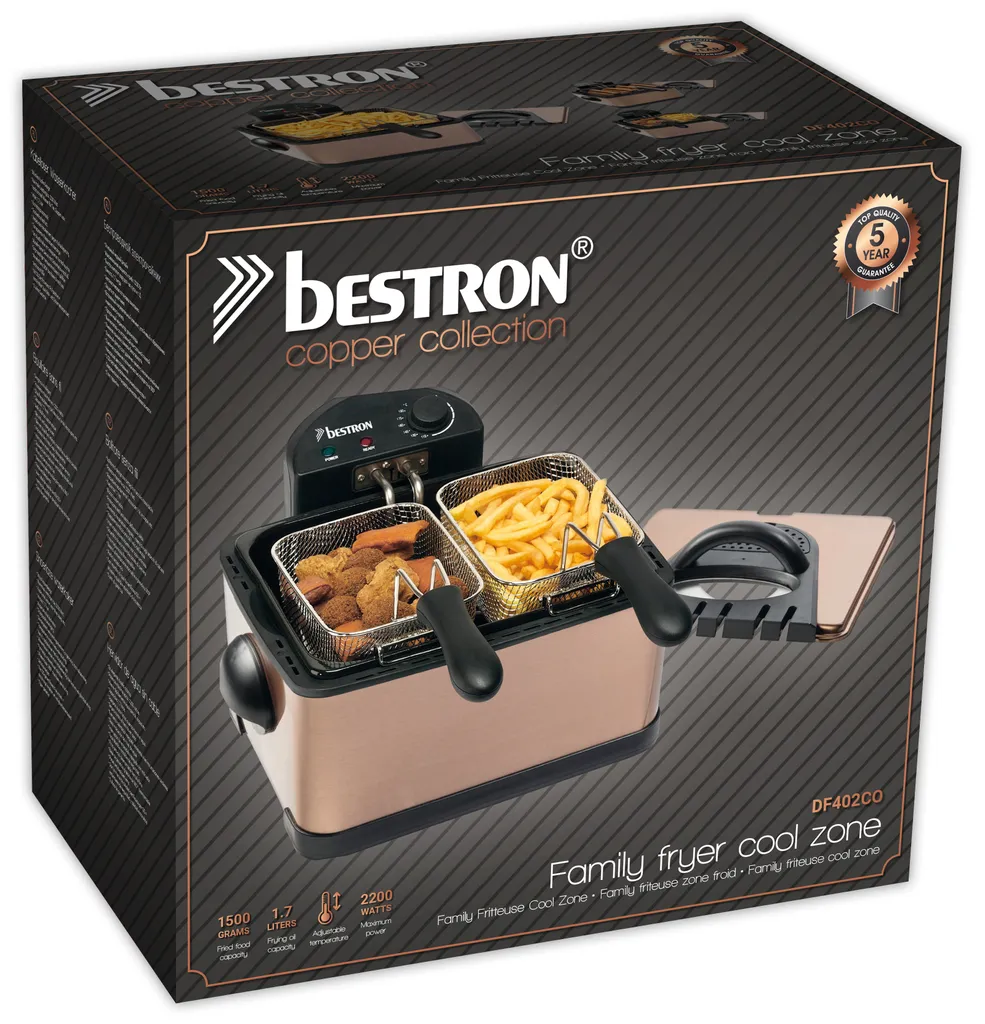 Bestron XL Öl-Fritteuse Mit 3 Frittierkörben, Inkl. Kaltzonentechnologie & Herausnehmbaren Ölbehälter, 4 Liter, Spülmaschinengeeignet, 2000 W, Edelstahl, Farbe: Kupfer