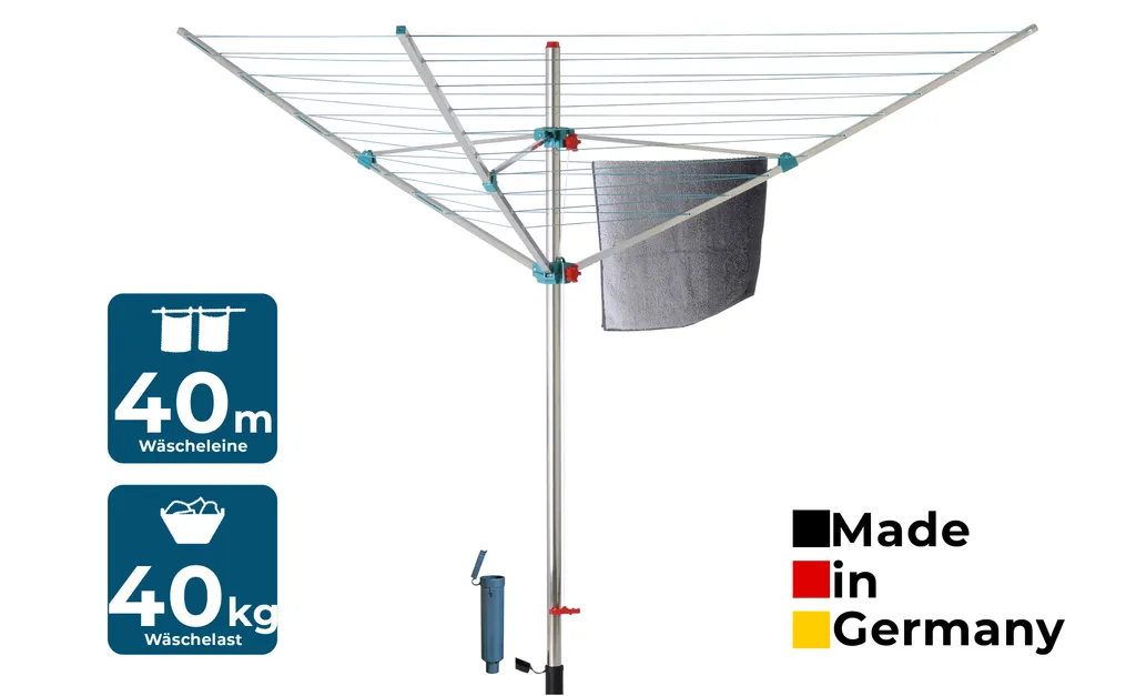 BLOME Wäschespinne Alustar XL – Wäscheständer Inkl. Bodenhülse Zum Einbetonieren, Germany