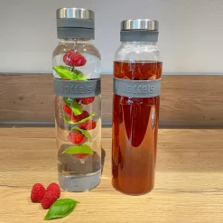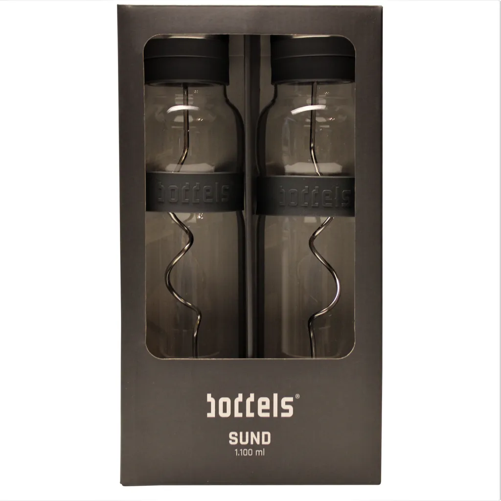 Boddels® 2er Set Glaskaraffen Mit Deckel – BODDELS SUND Wasserkaraffe Mit Fruchtspieß Und Filter 1,1L Anthrazit