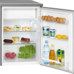 Bomann® Kühlschrank Mit Gefrierfach, Getränkekühlschrank Mit 120L Nutzinhalt Und 2 Glasablagen, Türanschlag Wechselbar, Kleiner Kühlschrank Mit Stufenloser Temperaturregelung – KS 2194.1 Inox