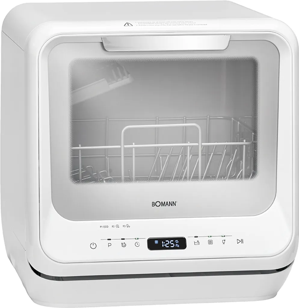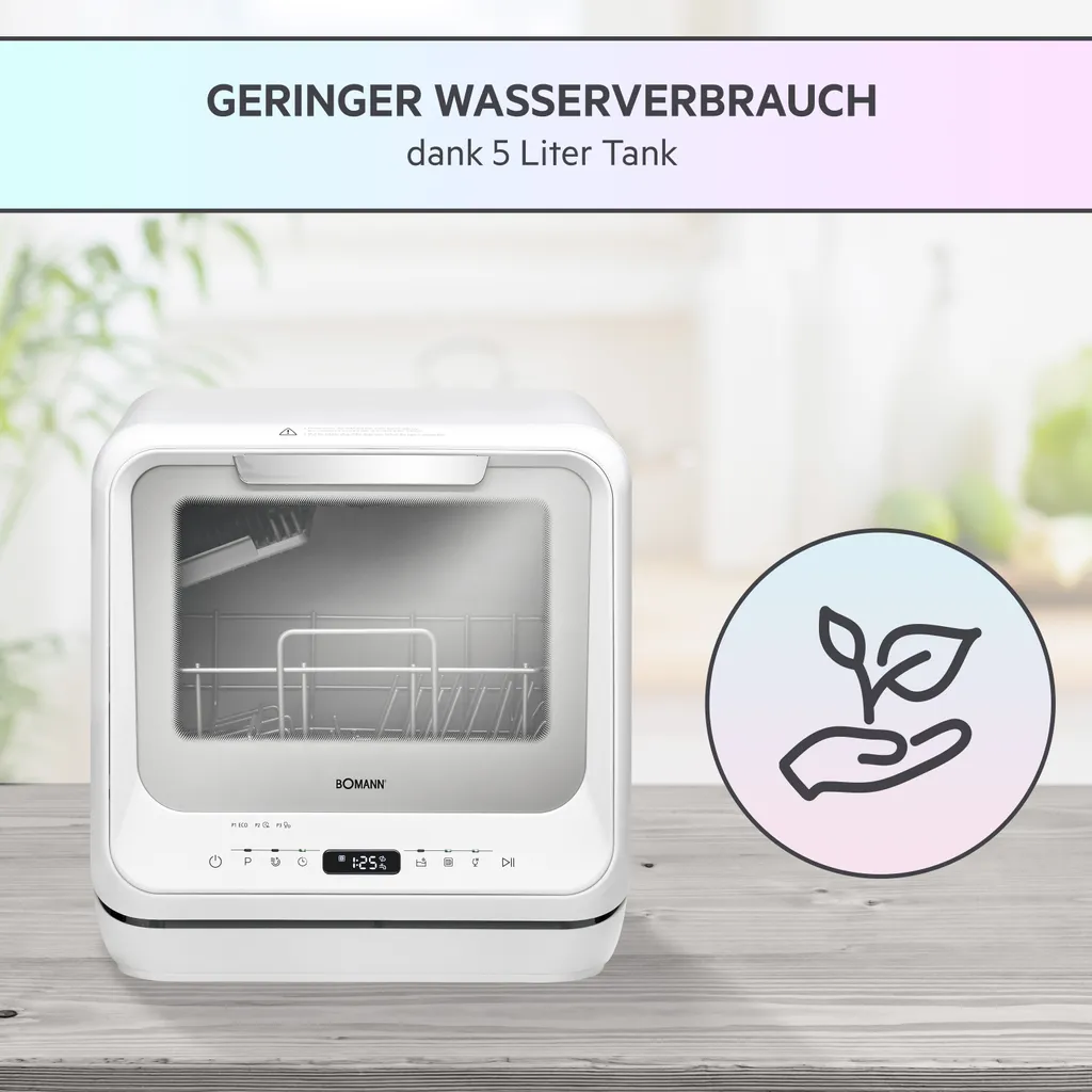 Bomann TSG 5701 Mini-Geschirrspüler, Mit Und Ohne Wasseranschluss Nutzbar, 5 Programme, 5L Wassertank Und Innenbeleuchtung, Weiß