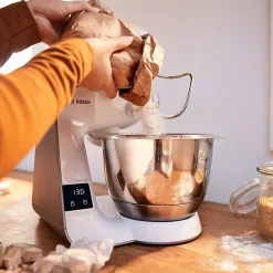 Bosch MUM5XW20 MUM 5 (champagne/weiß) Küchenmaschine, Rührschüssel, Knethaken, Flachrührer, Waage, Mixer-Aufsatz, Schneebesen