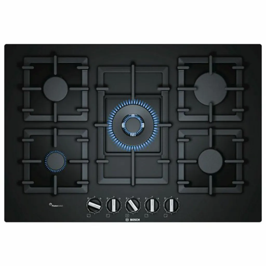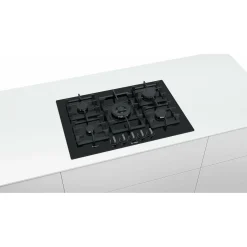 Bosch PPQ7A6B90 Gas-Kochfeld, 6 Serie, 5 Brenner, 75cm, Schwarzes Glas, Schwarzes Glas